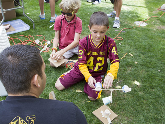 Displays ranging from a trebouchet modeled after those used on medieval battlefields to rockets that can fly into space were set up on the lawn next to the Virginia G. Piper Writers House on ASU’s Tempe campus and manned by engineering students and industry sponsors.